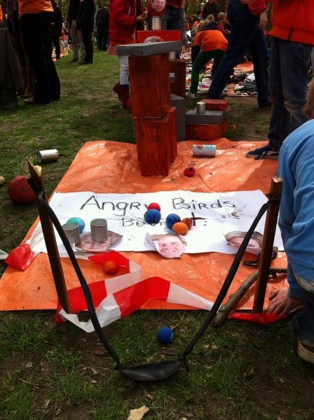 Beschrijving Vrijmarkt. Angry Birds katapult in het echt. Utrecht, 2013. Lepelenburgerpark