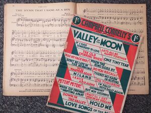 Tijdens de Eerste Wereldoorlog werd er in de Verenigde Staten maar ook in Duitsland en Engeland vrij veel bladmuziek uitgebracht. De liedjes waren bedoeld om het publiek te betrekken bij de strijd in Europa en daarbuiten. Onder het notenschrift staat de tekst zo afgedrukt dat je kan zien welk woord of lettergreep bij een noot past.