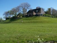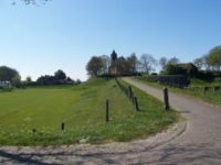 Dijk in Groningen; boerderij vlak achter de dijk