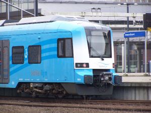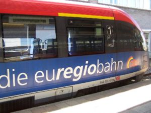Hogesnelheidstrein, kan heel snel rijden (300 kilometer per uur) en gaat naar Duitsland.
