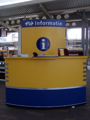 Als je vragen hebt kun je op sommige stations gebruik maken van een informatiezuil. In deze zuil zit een computer waarop je informatie op kunt zoeken. Je kunt ook gebruik maken van de informatiebalie. Daar zit iemand van de spoorwegen achter die je vragen beantwoordt.