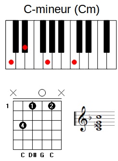 | Beschrijving | C-mineur akkoord op piano, gitaar en score |