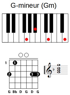 | Beschrijving | G-mineur akkoord op piano, gitaar en score |